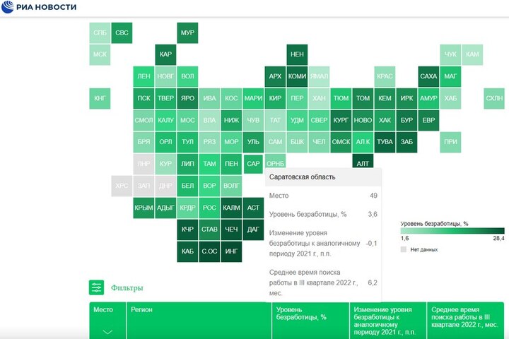 Саратовская области за минувший год в два раза опустилась в рейтинге российских регионов по уровню безработицы. Актуальные данные по итогам 2022 года опубликовало сегодня, 27 февраля, РИА Новости , проведя ежегодное аналитическое исследование.