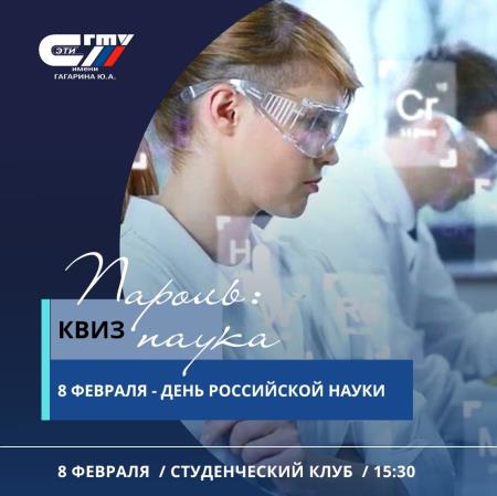 8 февраля в 15.30 Совет студентов высшего и среднего профессионального образования ждет всех на увлекательный КВИЗ «Пароль: наука», посвященного Дню российской науки