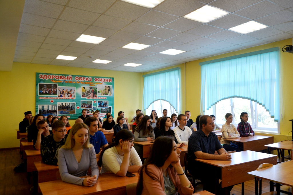 На встрече вместе со студентами слушателями лекции стали епископ Тарасий и преподаватели БИ СГУ.