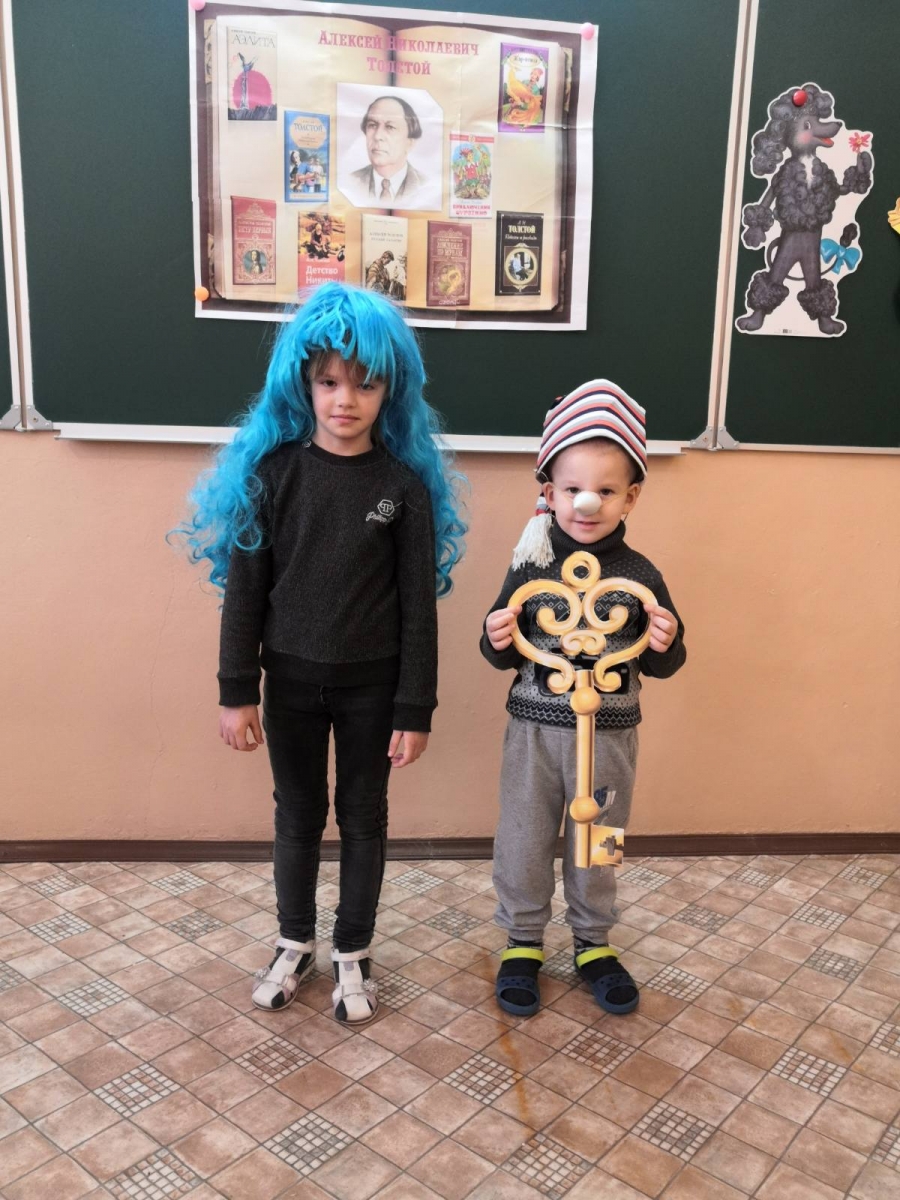 Была проведена игра-путешествие по сказкам писателя. Все дети активно участвовали в игре, демонстрируя хорошие знания литературных сказок. Воспитанники сами смогли побывать в роли Мальвины и Буратино из сказки Алексея Толстого «Приключения Буратино».