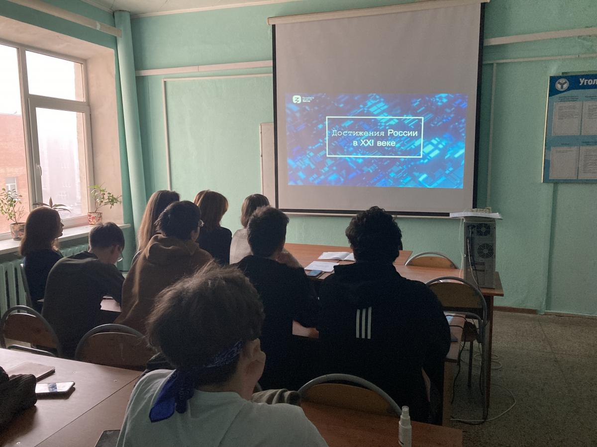 Обучающиеся ознакомились с основными достижениями России в XXI веке в различных сферах жизнедеятельности – науке, культуре, искусстве, спорте, бизнесе, промышленности, а в заключении – проверили полученные знания, отвечая на вопросы викторины.