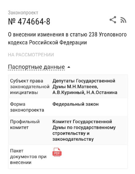 Депутаты фракции КПРФ в Государственной Думе вышли с законодательной инициативой о внесении изменений в статью 238 УК РФ (производство, хранение, перевозка либо сбыт товаров и продукции,