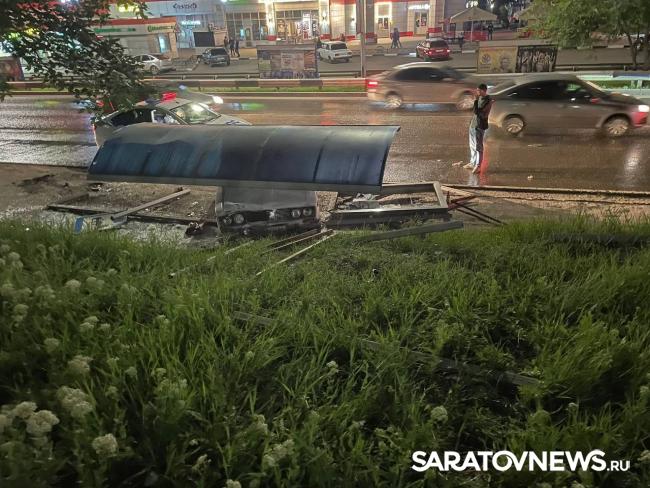 Вечером в субботу, 20 мая, в Солнечном микрорайоне Саратова произошло ДТП. В начале десятого вечера у дома № 34А по улице Тархова "ВАЗ-2106" въехал в автобусную остановку. Он полностью снес павильон. На легковушке осталась висеть только крыша от сооружения. За рулем "шестерки" был 23-летний парень.