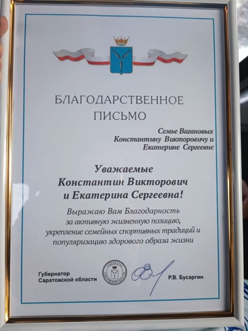 Сегодня на заседании коллегии министерства спорта Саратовской области министр спорта области Олег Дубовенко вручил благодарственные письма Губернатора Саратовской области Романа Викторовича Бусаргина семьям Вагановых и