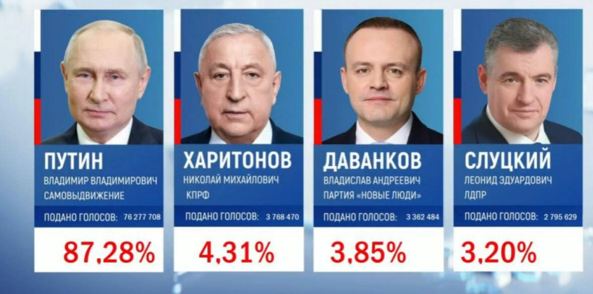 Центральная избирательная комиссия России официально объявила Владимира Путина Президентом страны. На выборах он набрал 87,28% голосов.