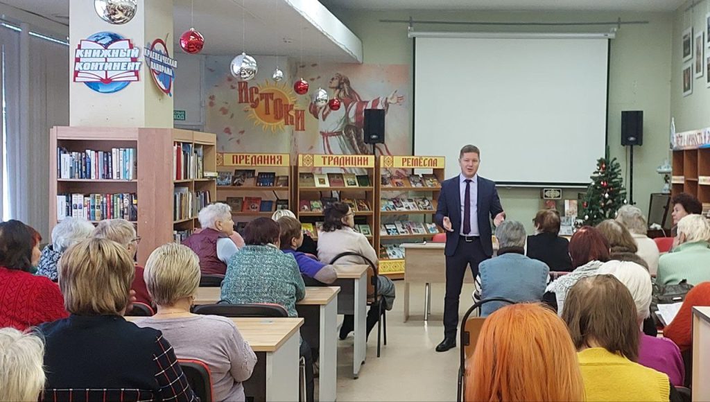 11 января в МАУК «Межпоселенческой центральной библиотеке БМР» прошла встреча и.о. главы города Балаково Леонида Родионова с участниками клуба пенсионеров «Надежда». Встреча прошла в формате свободного общения. Представители старшего поколения поинтересовались у парламентария, как работают бюджетные учреждения, что можно сделать для развития туризма в городе и сохранения исторического наследия. Представительница музыкально-поэтического объединения «Люстра Эммы» рассказала о выпуске поэтических сборников. Часть вопросов касалась благоустройства города, общественных и внутридворовых территорий.