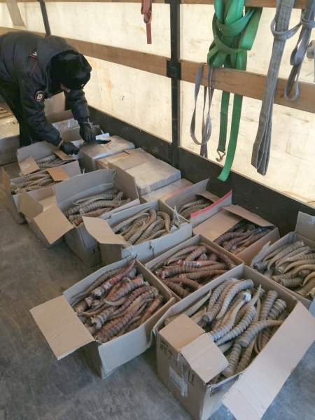 Полицейские обнаружили в кузове 19 коробок с рогами, предположительно, краснокнижного сайгака - почти полторы тысячи штук, без каких-либо сопроводительных документов.