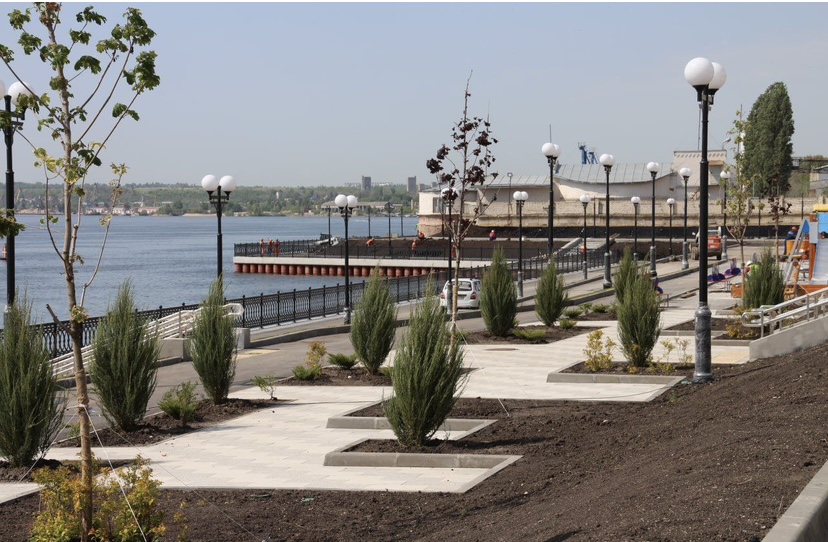 «В настоящее время подрядчики выполняют благоустройство, установку ограждений, продолжается укладка асфальтового покрытия и озеленения. Протяженность набережной после завершения работ составит 6,4 км. Уже в июне новый участок будет открыт для жителей и гостей Саратова.