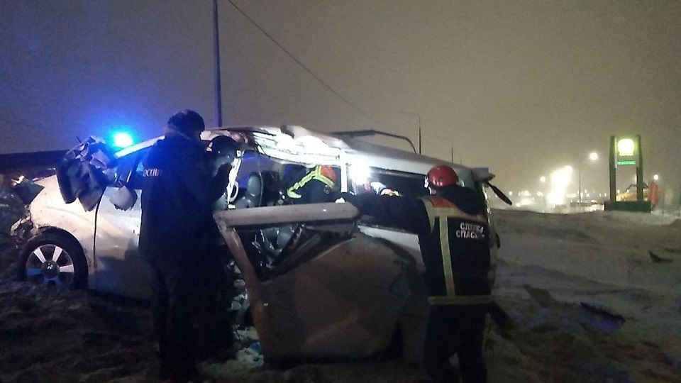 Сообщение об аварии поступило в службу "112" в 1.33 - на СКАД близ поселка Дубки водитель минивэна протаранил опору ЛЭП.