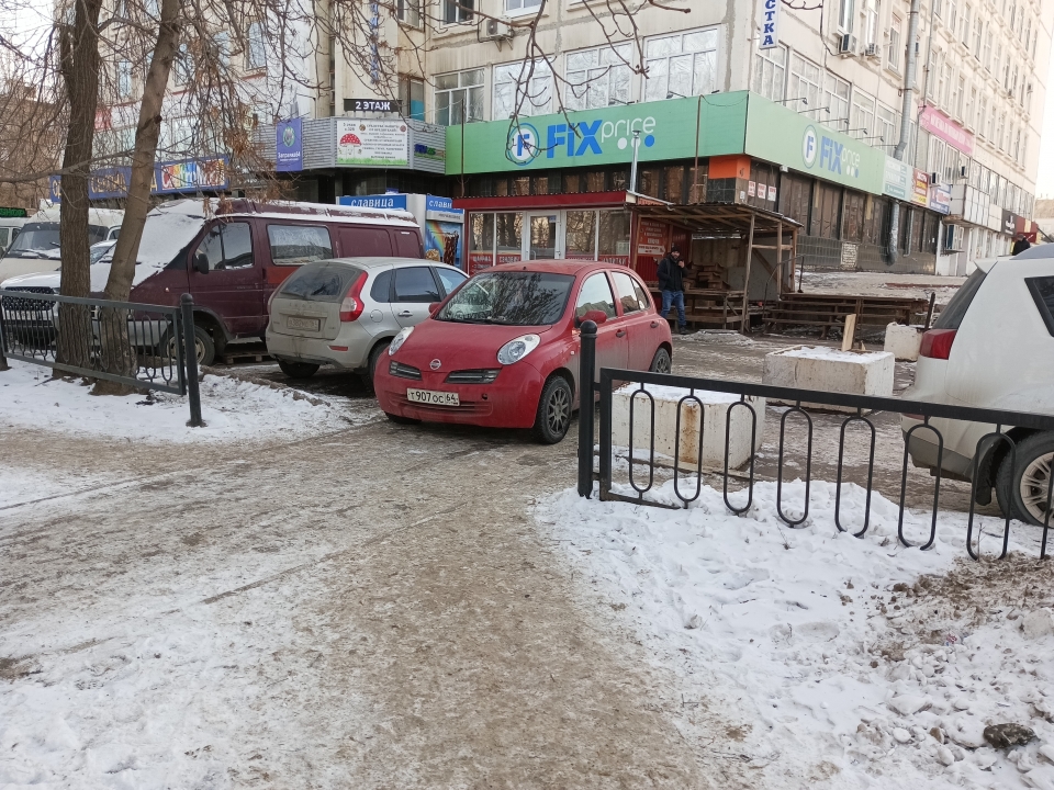 Около торгового центра "Орбита" (проспект 50 лет Октября, 89в), у входа в аллею Героям-пограничникам, с нарушениями ПДД припарковали автомобиль "Ниссан Микра" с государственным номером Т907ОС64. Иномарка мешает движению пешеходов.