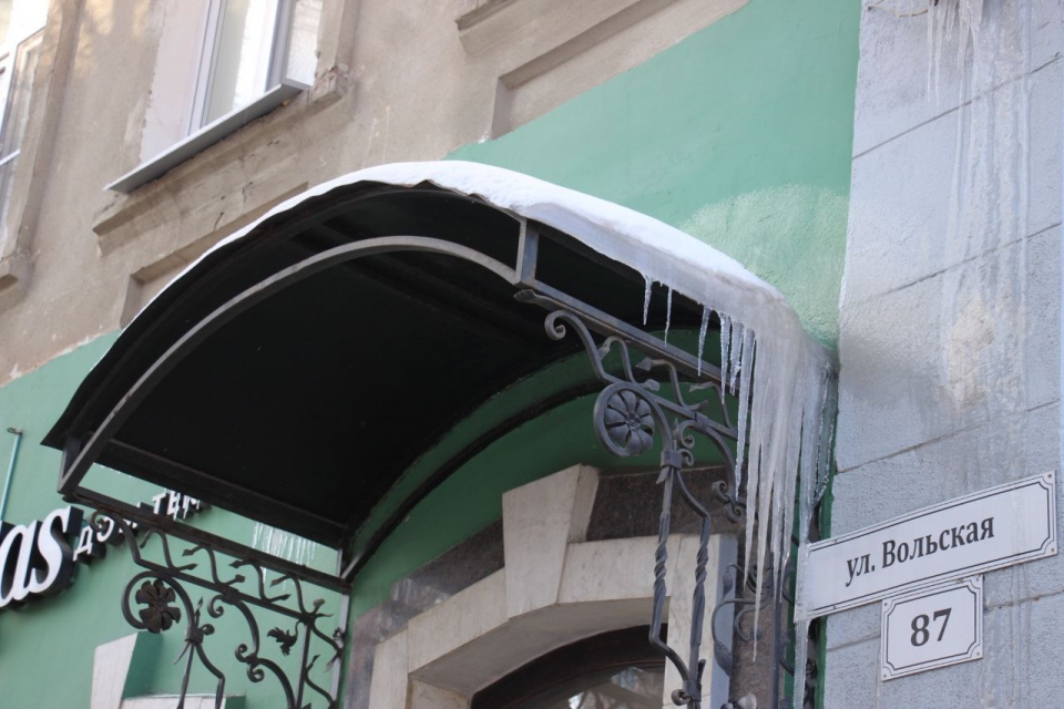 Падение льда на женщину в Саратове. Сосульки на здании продолжают угрожать здоровью прохожих
