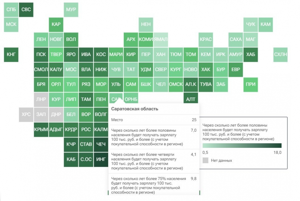 Сроки ожидания жителями Саратовской области достойной зарплаты (в 100 тыс. рублей) за минувший год заметно снизились.