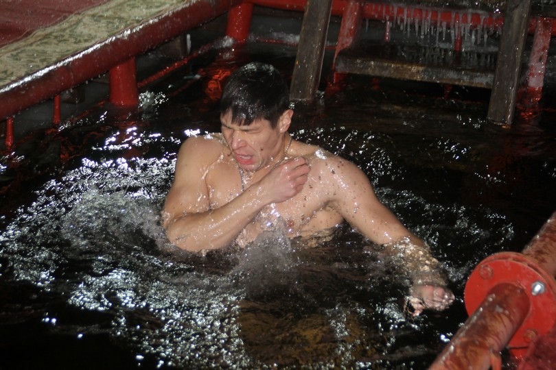 Саратовцы по-разному выражали свои эмоции от ныряния: одни весело бежали на обогрев, другие кричали благим матом, третьи и вовсе - подойдя к купели, в последний момент разворачивались и уходили. Многие приходили парами: один ныряет, другой снимает.