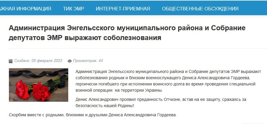 В ходе специальной военной операции погибли Денис Гордеев из Энгельсского района и Александр Ястребов из Аркадакского района Саратовской области.
