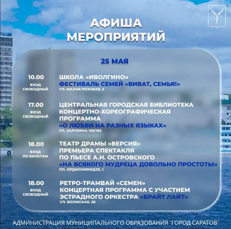 Представляем афишу мероприятий, которые пройдут в городе в субботу и воскресенье.
