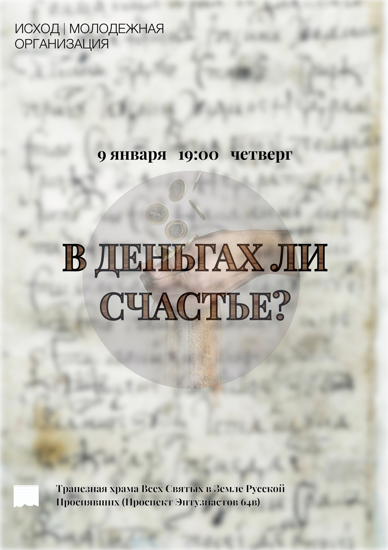 9 января в молодежной организации «Исход» при Всехсвятском храме Саратова пройдет дискуссия «В деньгах ли счастье?».