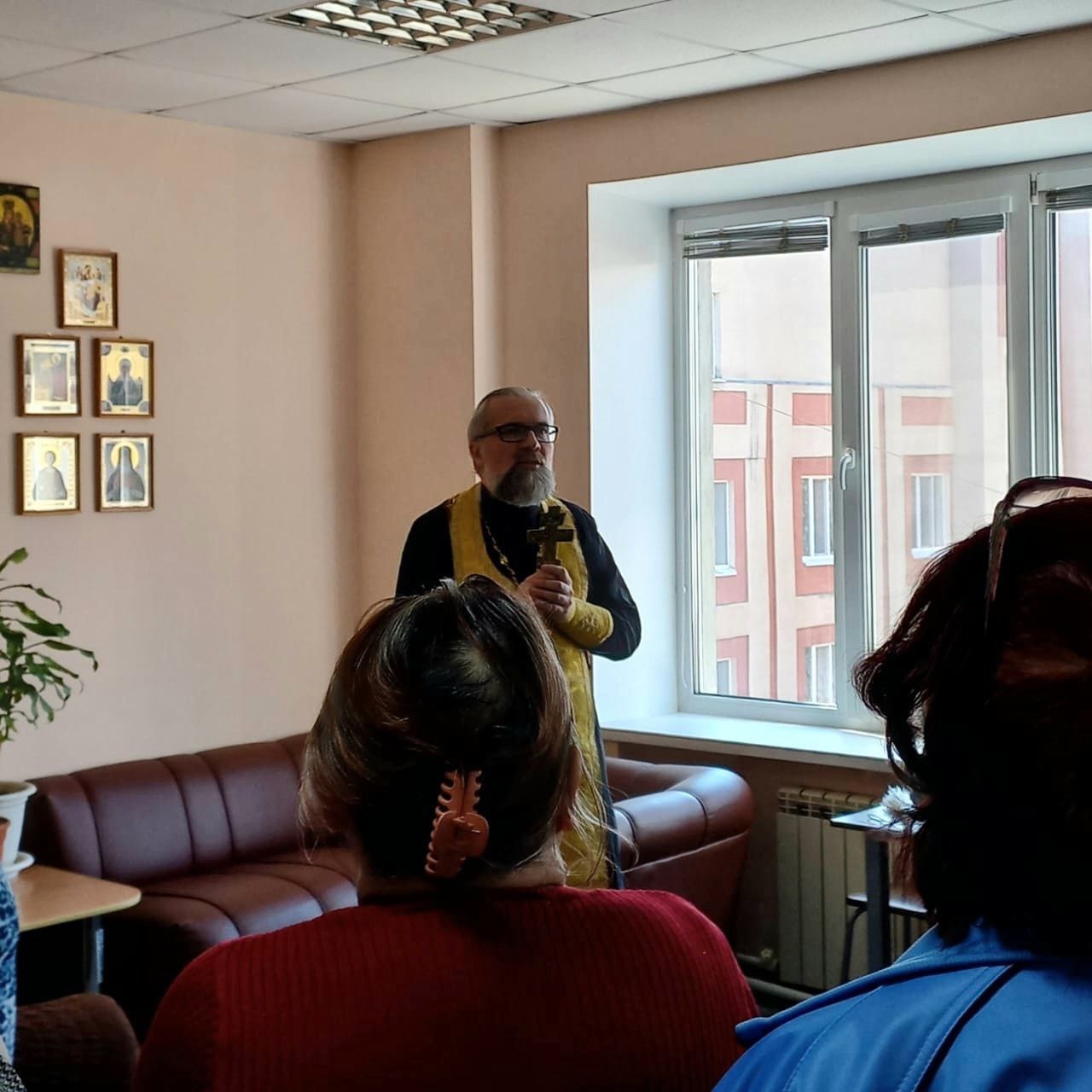 Священник ознакомил присутствующих с выставкой старинных церковных книг. По окончании мероприятия отец Роман ответил на вопросы присутствующих, делясь своими знаниями и мнением о важности изучения духовной литературы.