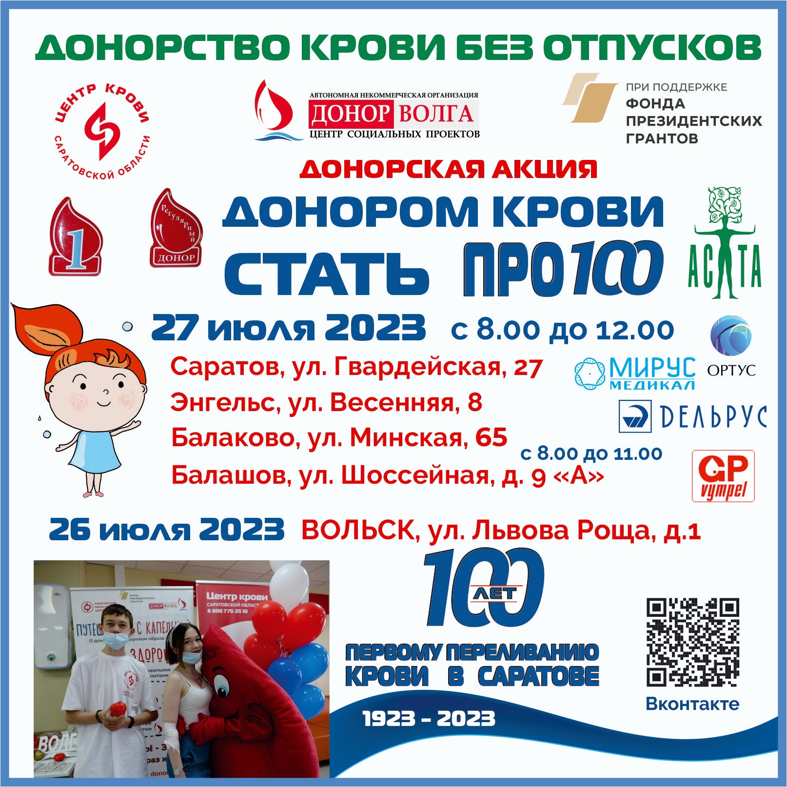 ✅ @donorvolga АНО «ДОНОР ВОЛГА» и @sospk Саратовский Центр Крови приглашают на донорскую акцию «Донором крови стать ПРО100» в 5 ОЗК Саратовского центра крови