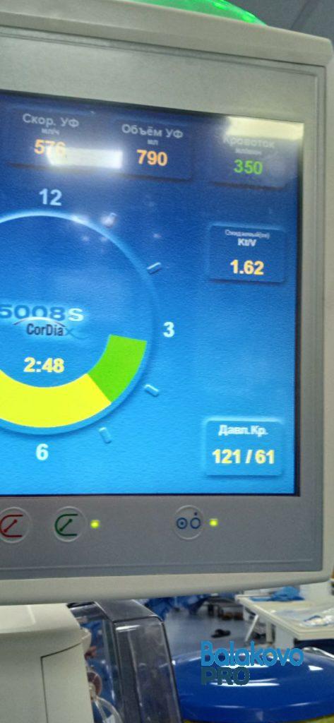 На фото показания приборов с процедуры, которая сейчас проходит в центре. И по данным на экране, фильтрация не включена. Эти цифры были бы справа под значениями 1,62.