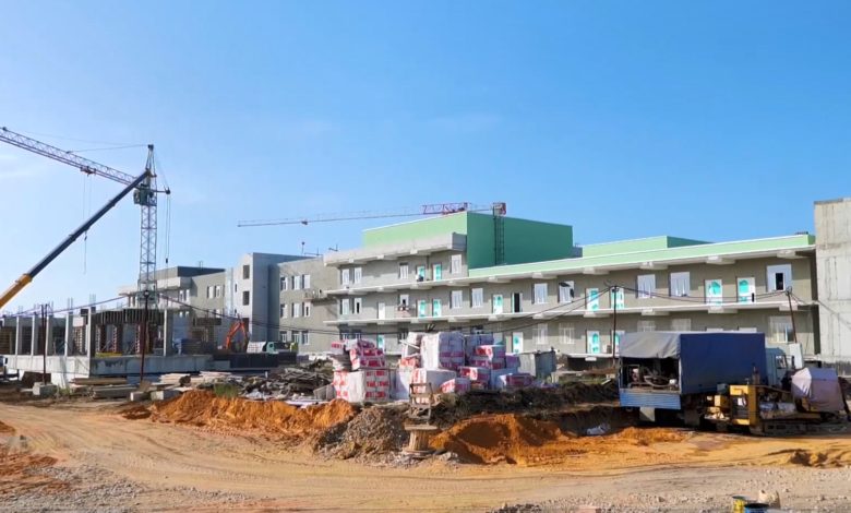 На стройке противотуберкулёзного диспансера ежедневно работают более 300 человек и множество техники