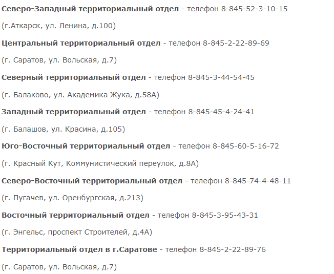 Вопросы можно задать по телефону: 8-800-100-1858 с 10:00 до 17:00. Обратиться также можно в территориальные отделы по Саратовской области: