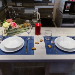 ✔ Кухня оборудована бытовой техникой (холодильник, электроплита, микроволновая печь) и посудой. На нашей кухне вы всегда сможете найти чай, кофе, сахар, соль, печенье.