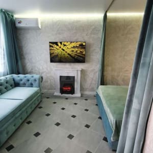 Новый дом, в квартире дизайнерский ремонт, зонирование комнат, новая мебель. Просторная кухня-столовая с электрокамином и кабельным ТВ. Есть все необходимое для вашего отдыха: холодильник, духовой шкаф, микроволновка, стиральная машина, вся необходимая посуда.